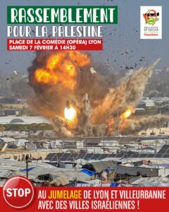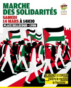 Nous appelons les syndicats, les partis politiques, les associations et les citoyens du Rhône à rejoindre notre Collectif, à développer toute action signifiant notre soutien aux luttes du peuple palestinien POUR UNE PAIX DANS LA JUSTICE.