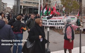 Un millier de lyonnais.es se sont rasseblé.e.s au centre de Lyon pour dénoncer le génocide de Gaza et réclamer le cessez-le-feu permanent, et exiger qu’Israël laisse passer l’aide humanitaire. En plus de panneaux des palestiniens assassinés par l’armée israélienne montrant leur visage et leur nom, des cordes à linges portant des habits ensanglantés d’enfants sensibilisaient les passants du centre de Lyon à cette guerre faite aux enfants. Les interventions au micro ont informé de la marche pour Gaza qui doit avoir lieu à partir du 12 juin depuis le Caire et exprimé la solidarité avec le « Madeleen » bateau pour briser le siège de Gaza avec à son bord Rima Hassan et Greta Thunberg « Rima, Greta, Lyon est avec toi ! Gaza, Gaza Lyon est avec toi ont scandé les participant.e.s. Vidéo