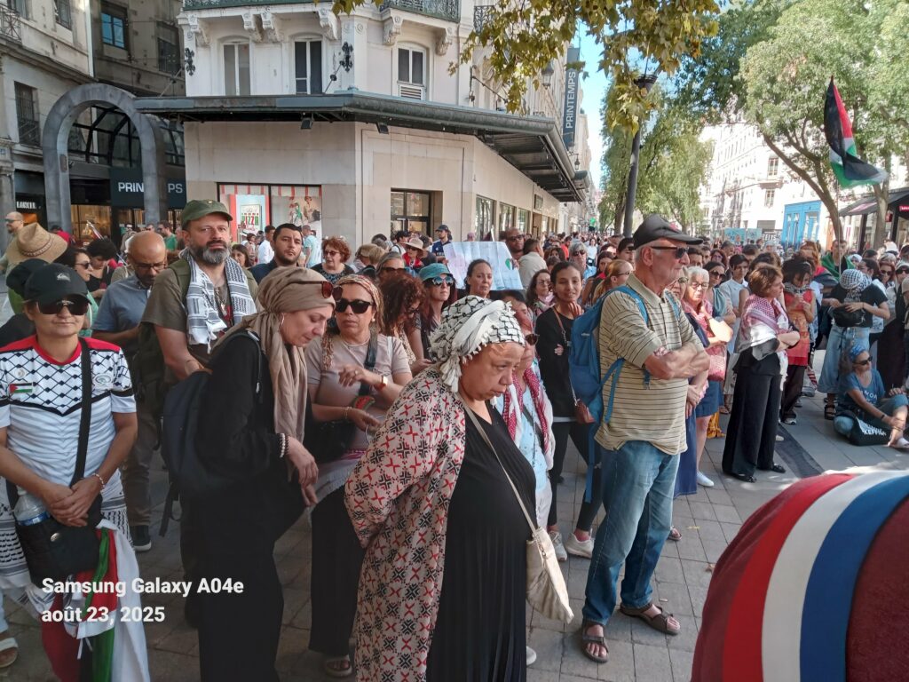 La famine comme arme de guerre ! Toutes les lignes rouges ont été franchies par Israël ! Voilà ce qu’on voulu exprimer les plus de 600 lyonnais.es rassemblé.e.s de nouveau ce samedi 23 août au centre de Lyon : »Gaza Gaza, Lyon est avec toi », « Génocide à Gaza, on n’se taira pas » ils exigent une réelle action de leur gouvernement et des sanctions contre Israël ! Deux lignes rouges posées sur le sol et tracées à la craie en lettres géantes « Israël a franchi toutes les lignes rouges » interpellaient les passant.e.s nombreu.x.ses