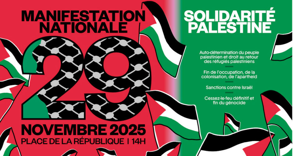 Manifestation nationale Solidarité Palestine à Paris samedi 29 novembre