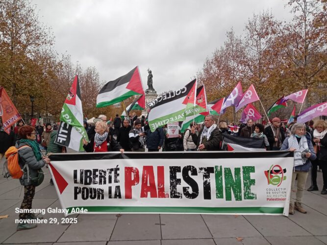 Nous manifesterons le 29 novembre à Paris pour la défense des droits du peuple palestinien sur la base du droit international.