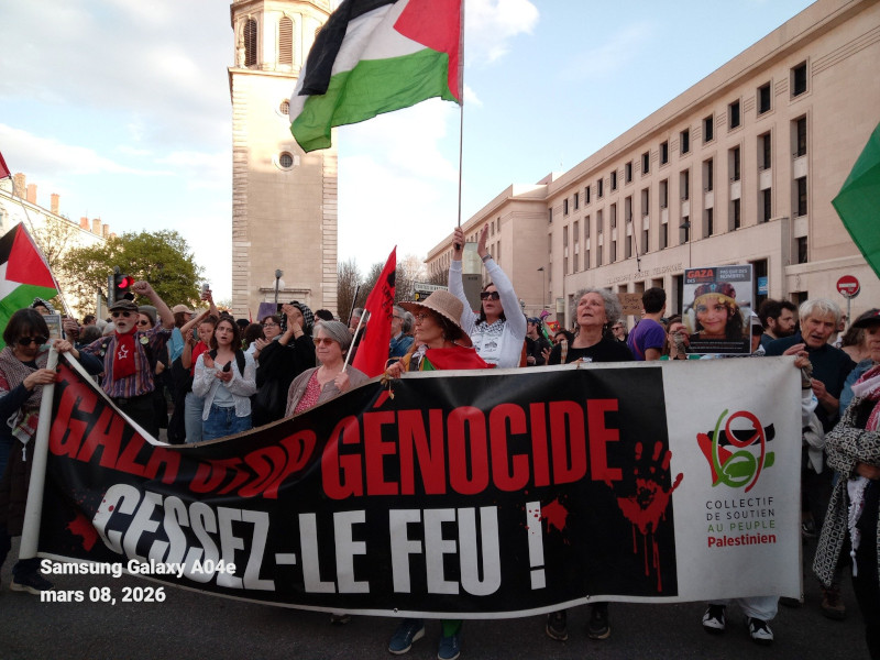 Le collectif 69 de soutien au peuple palestinien (texte lu à la grande manifestation unitaire le 8 mars à Lyon pour la journée internationale des droits des femmes et des minorités de genre)