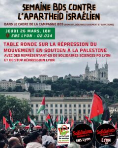 • jeudi 26 mars 2026 Table ronde sur la répression du mouvement de solidarité avec la Palestine E.N.S Lyon