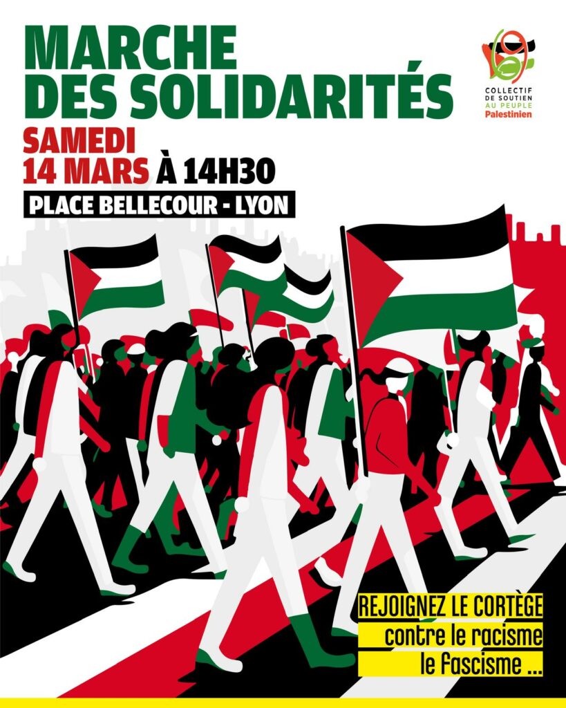 • Samedi28 mars 2026 – Manifestation nationale unitaire en régions   Départ 14h30 Place Bellecour