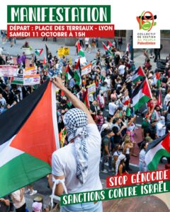 Marchons contre le génocide samedi 11 octobre 2025 à 15 h place des Terreaux.